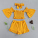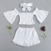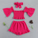 One shoulder flare sleeve three piece set