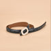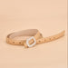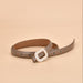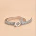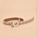 New Women's Inlaid Pearl Rhinestone Round Buckle Leather Belt