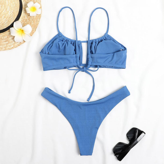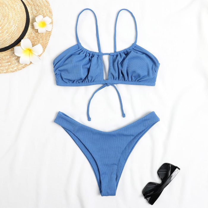 New Simple Solid Color Pit Strip Women's Split Bikini
