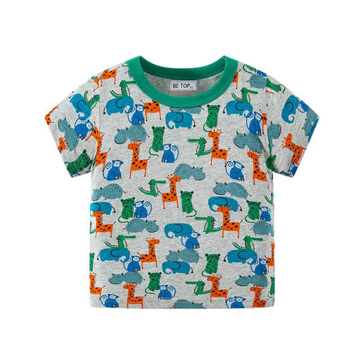 Small and medium-sized boys' animal cartoon cotton short sleeve round neck T-shirt