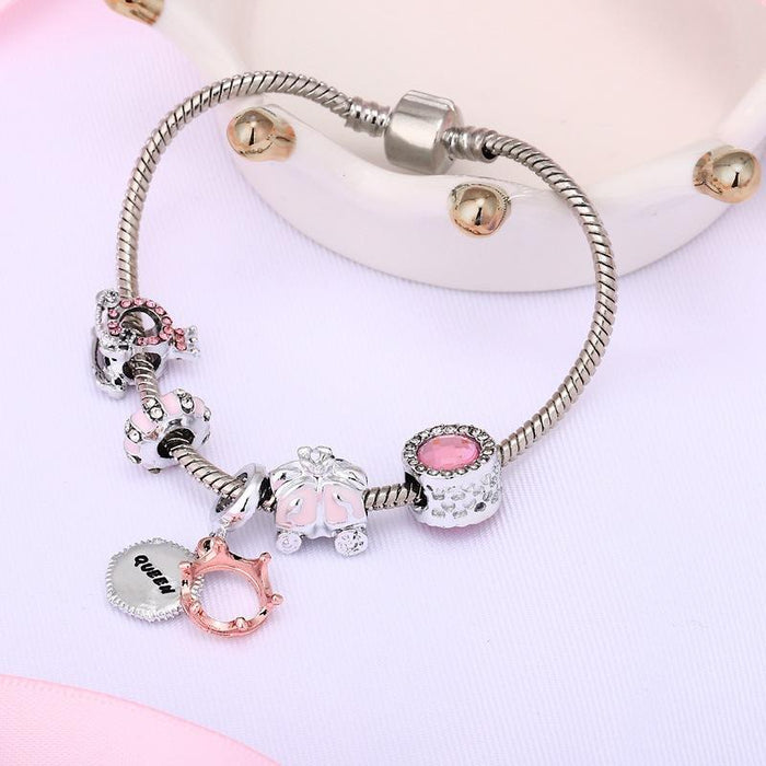 Crown Queen Pendant Pumpkin Carriage Beaded Bracelet