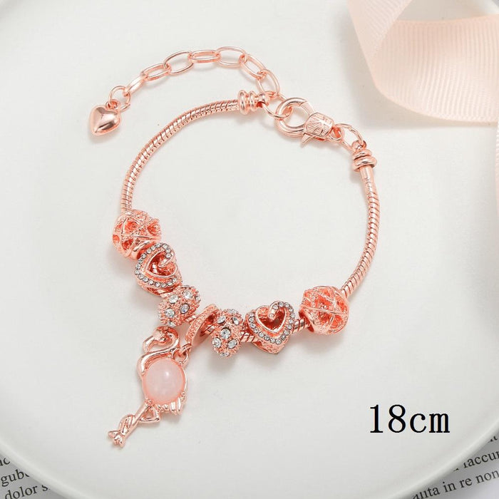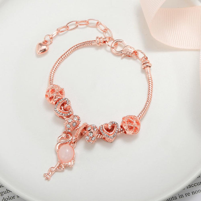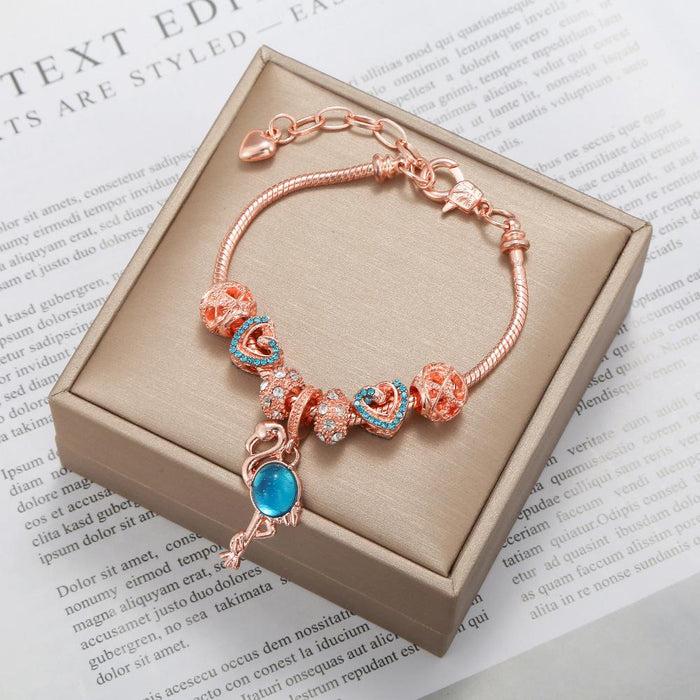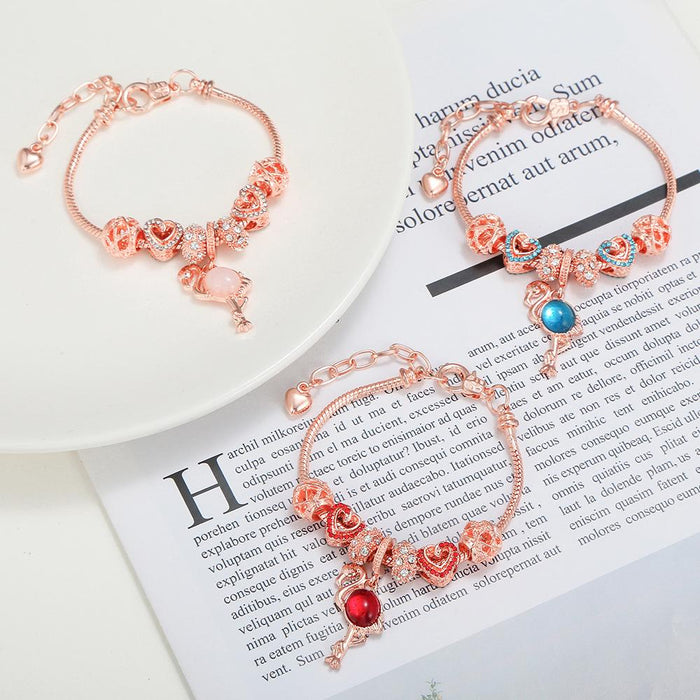 Flamingo Pendant Love Big Hole Bead Bracelet