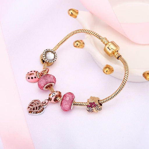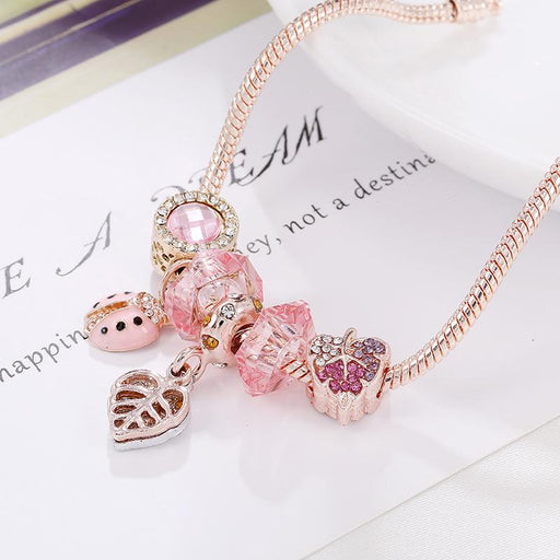 Forest Ladybug Fallen Leaf Pendant Glass Bracelet