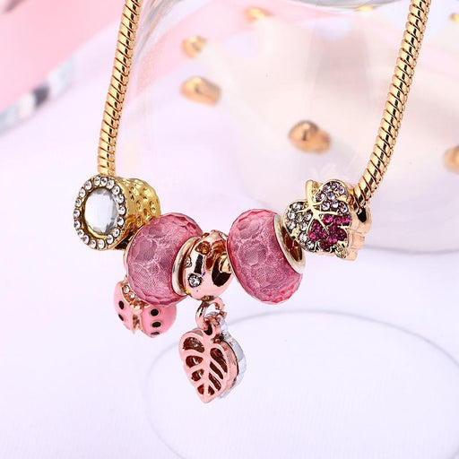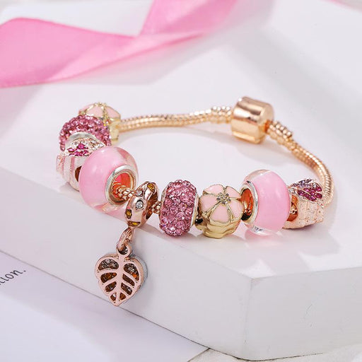 Rose Gold Leaf Pendant Leaf Beaded Bracelet