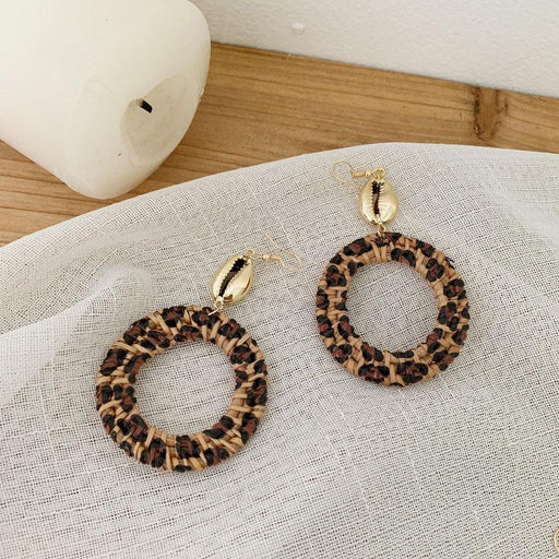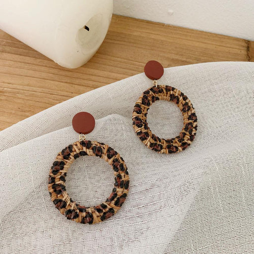Colorful Leopard Print Fashion Hand Woven Exaggerated Rattan Earrings Jewelry