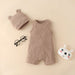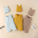 Baby one piece sleeveless creeper suit solid color waffle hat hatchback two piece set