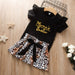 Letter short sleeve top leopard skirt