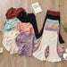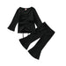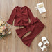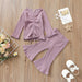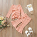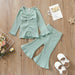 Multicolor pit lace up long sleeved top flared trousers