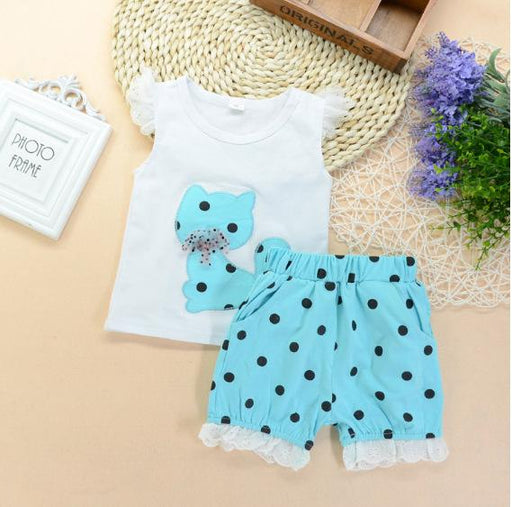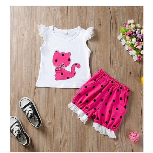 Sleeveless Kitty Polka Dot lace shorts two piece set
