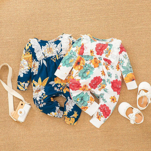 Summer Short Sleeved Printed Round Neck Jumpsuit for Baby Girls