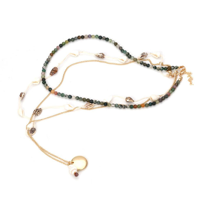 3pcs/set Hand Woven Bohemian Conch Bead Pendant Necklace