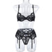 Sexy Lingerie Women's Lace Push Up Underwear Three-piece Set