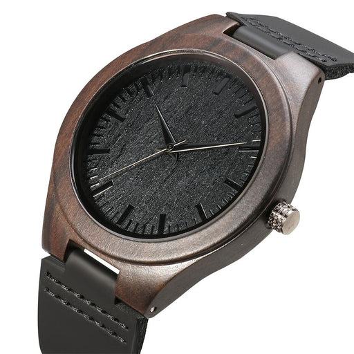 2022 Classic Simple Men's Leather Strap Ebony Wooden Watch