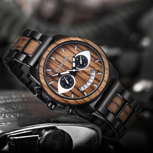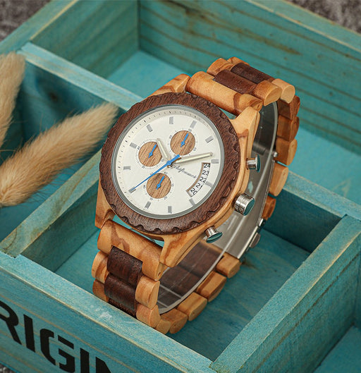 Men's Sports Multifunctional Wood Business Quartz Watch