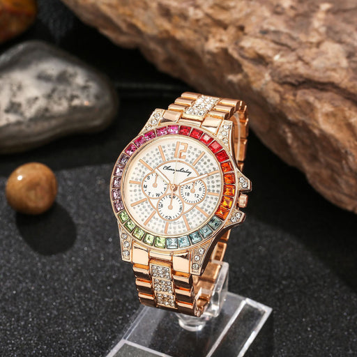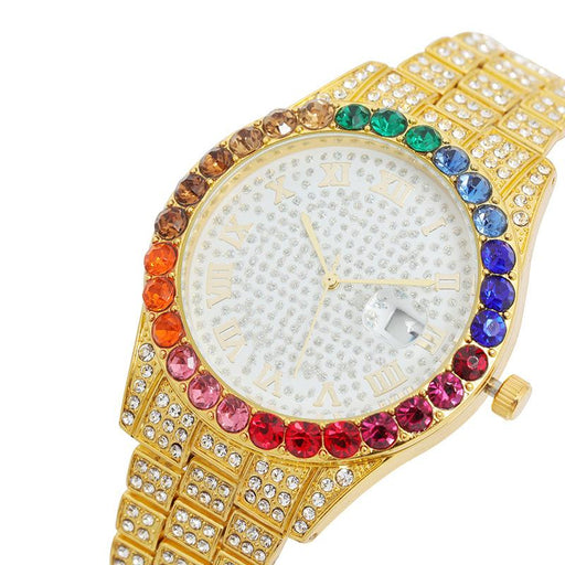New Full Sky Star Steel Band Color Diamond Calendar Quartz Watch Llz20802