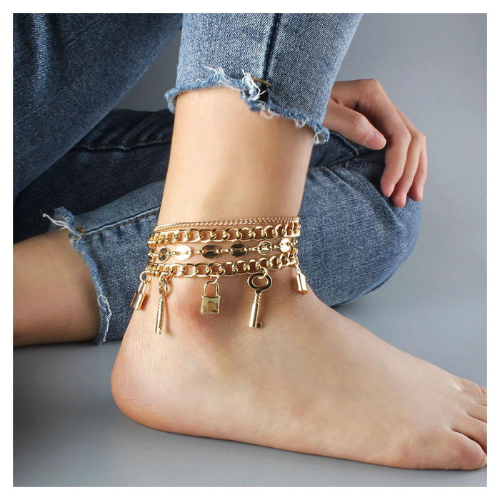 Alloy Lock Pendant Multi-layer Foot Chain Female Foot Decoration
