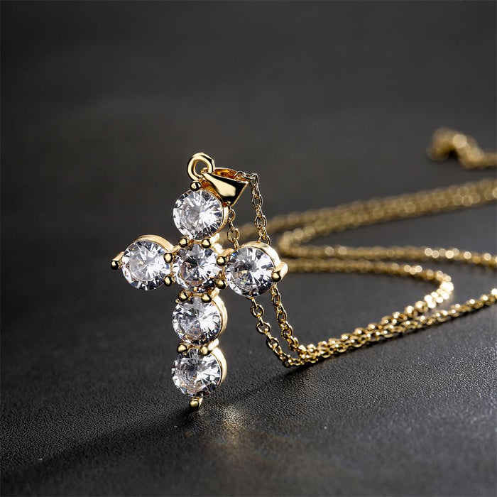 Classic Vintage Cross Pendant Zircon Necklace