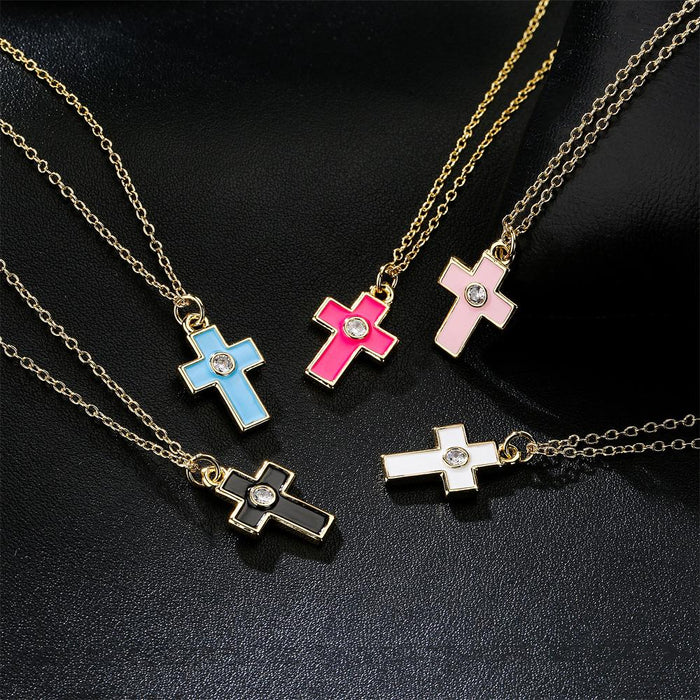 Personality Fashion Drip Oil Cross Pendant Gold Color Necklace