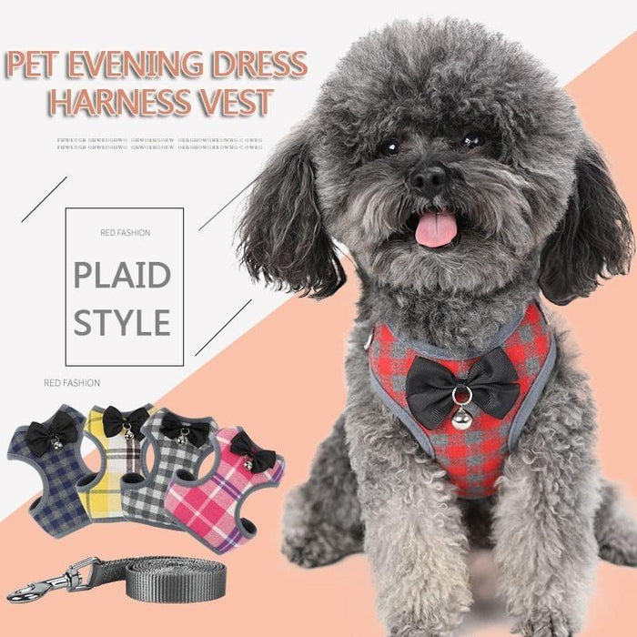 Plaid Evening Dress Small Dog Harness Vest With Leash Pitbull Mesh Puppy Harness Beagle Pet Accessories Cats Products For Pets