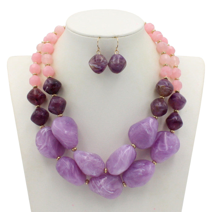 Women's Jewelry Jelly Color Beaded Double Layer Sweater Chain Necklace